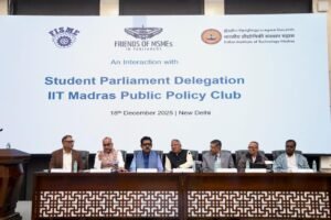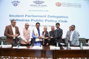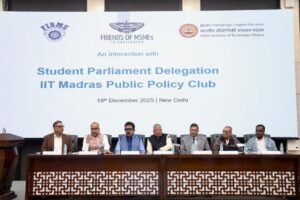 Friends of MSME in Parliament, in collaboration with FISME, hosted a delegation of 60 members from the Public Policy Group of IIT Madras on 18th December 2025 in New Delhi. As the secretariat of the forum, FISME organized the event and facilitated a meaningful dialogue between policymakers and academia. The programme was chaired by Shri Shankar Lalwani, Hon’ble Member of Parliament and Chairman of Friends of MSME in Parliament, and concluded with engaging discussions between the students and faculty members of IIT Madras and the leadership of Friends of MSME in Parliament. The event witnessed the participation of prominent leaders including Shri Rajendra Agrawal, Convenor of Friends of MSME in Parliament; Shri Sujeet Kumar, Member of Parliament (RS) and Shri S.K. Jain, President of FISME; Shri Rakesh Chhabra, Vice President of FISME; and Shri Dinesh Singhal, Past President of FISME